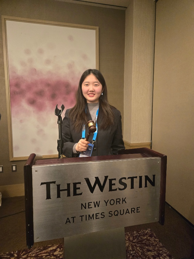 2026年2月9日至13日,联合国协会世界联合会国际模拟联合国大会·纽约会议(WIMUN NewYork)在纽约举行。我校优秀学生代表国际学院李怡潼同学与首都高校其余53名学子共同参与此次国际交流活动。